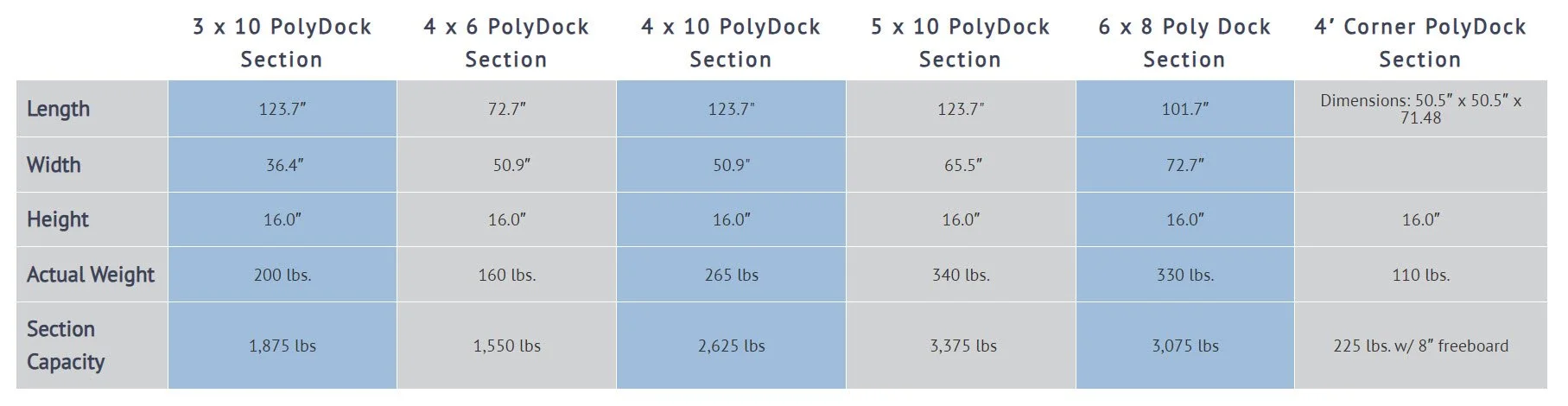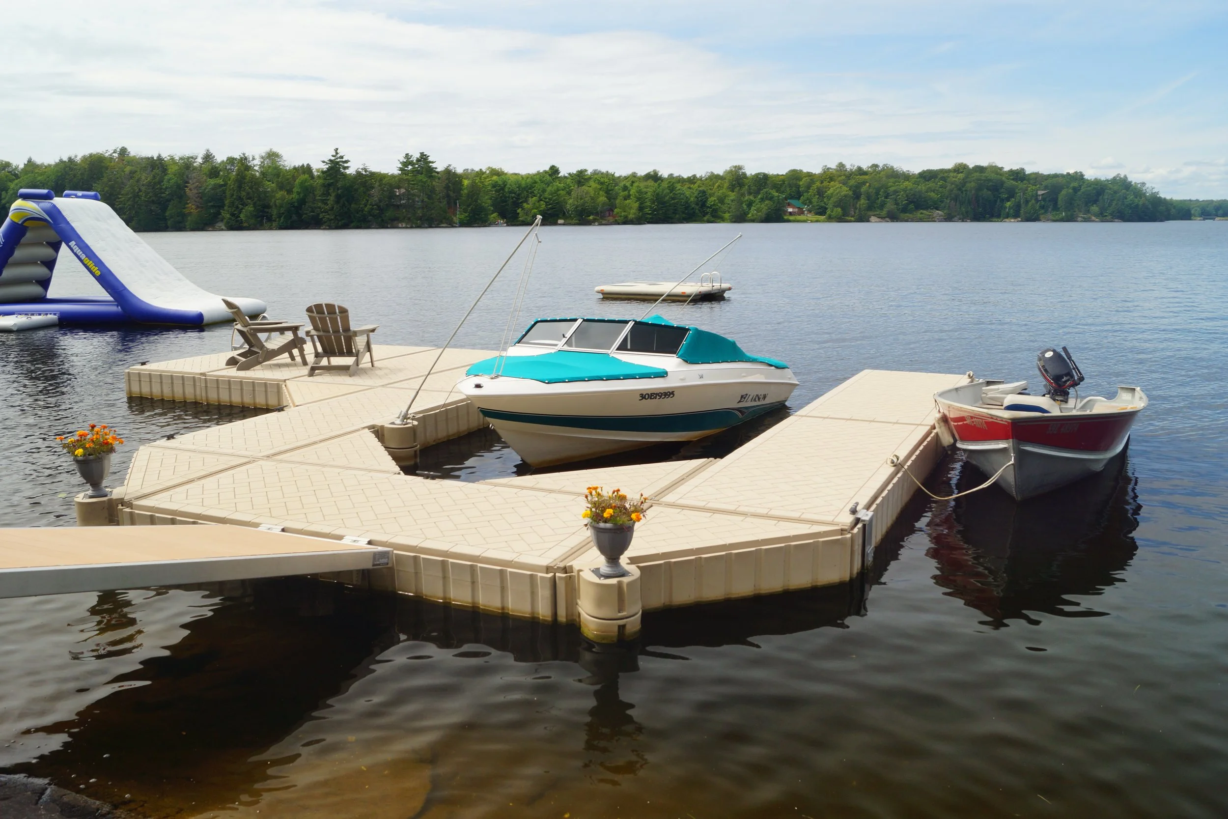 PolyDock is a modular, rotationally molded, polyethylene floating dock system designed to look great at your shoreline, and provide you with exceptional value for years. The recessed areas on the bottom of each section help to provide stability between the dock and the surface of the water. This means less movement as you walk the length and width of your dock system. PolyDock is designed to feel firm underfoot along the length and width of its slip-resistant brick patterned surface, so you and your family will enjoy every day spent on your PolyDock modular floating dock system.